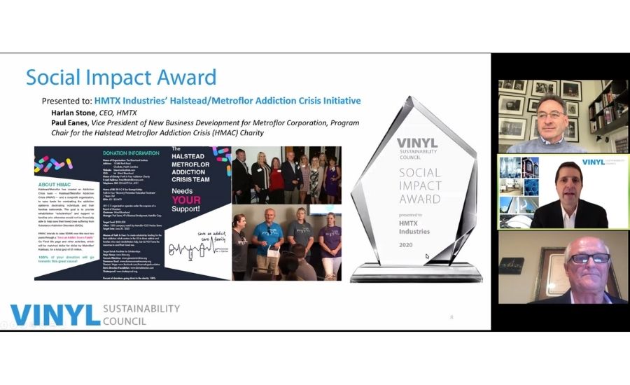 HMTX Industries is one of two winners of the first-ever Vinyl Sustainability Council (VSC) 2020 Social Impact Award for its founding of the Halstead/Metroflor Addiction Crisis (HMAC) Charity, a nonprofit organization created to raise funds for combatting the addiction epidemic decimating individuals and their families nationwide. GEON Performance Solutions, of Westlake, Ohio is a co-winner along with HMAC.