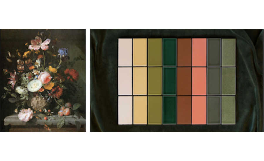 Taking cues from the old masters, Fireclay has curated Dutch-Masters Palette, a new collection that features rich, warm hues and paint-like textures inspired by Dutch Golden Age still life painters such as Jacob van Walscapelle. The collection comes in eight colors (Calcite, Chardonay, Serpentine, Basil with Black Patine, Stilbite, Venetian Green, Loch Ness, and Antique) and eight different shapes (3x3 in. square; 2x4, 3x12, 2x6, and 1x4 in. rectangle; 3 and 4 in. hexagon; and mini star and cross).