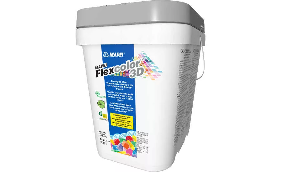At Coverings 2017, MAPEI introduced a new grout collection that will give designers the opportunity to add multi-faceted effects to their tile options for clients. MAPEI Flexcolor 3D is a professional-grade, ready-to-use translucent specialty grout with an “iridescent effect” finish. Its translucent characteristics not only reflect but also refract light. This allows the grout to transition in color to complement tile colors.
