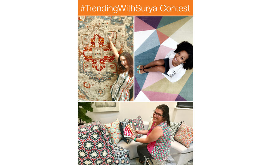 Surya recently announced that it is holding an Instagram contest, #TrendingWithSurya, for the High Point Market in Atlanta, July 11-18. Participants enter by posting a photo to Instagram of a Surya product that coordinates with what they are wearing.
