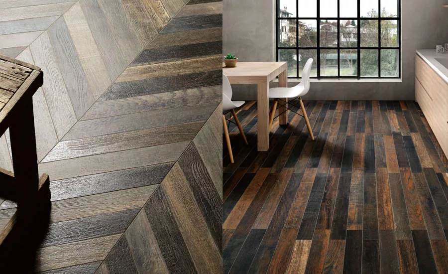 Faux Bois, meaning false wood in French, is an Italian porcelain collection with an antique wood-look finish from Walker Zanger. Reminiscent of aged wooden floors and featuring wide variation, Faux Bois also has the durability and easy maintenance of porcelain tile. Faux Bois is available in four wood tones (Cherry, Chestnut, Oak, and White Oak) in plank and two chevron formats (Chestnut and White Oak).