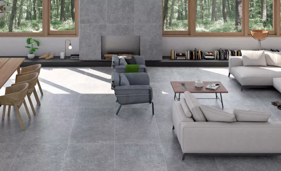 The Arduen series is inspired by the beauty of the dark and magical vegetation in the wooded Belgian region of Ardennes. The colored-paste porcelain collection is available in a range of greys, with a smooth texture with relief or a worn look. Units from the Arduen collection are available in 75x150 cm, 37.5x150 cm, and 75x75 cm with different finishes in 60x60 cm and 30x60 cm, and the 20 mm nonslip paving version for outdoor use.