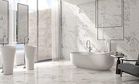 Complete with rectified edges, Soberano will be available in a stunning Nero color consisting of a dark brown-grey base with white veins that at times blend together to create new shades. This collection, available in both a polished and matte finish, will have its offerings in two distinct formats: 12x24 in. and 24x24 in.. The complete package includes a matte finish, mesh-mounted Hexagonal mosaic and Surface Bullnose presented in both finishes.