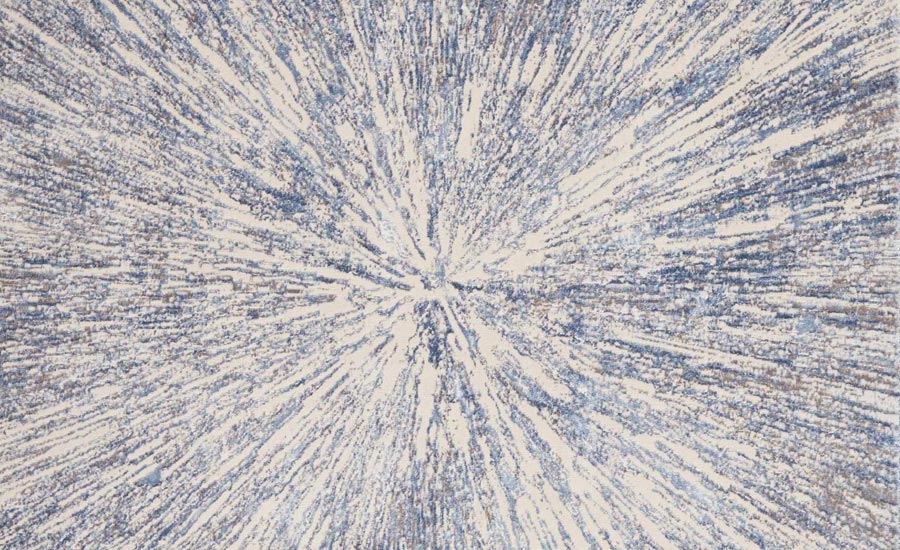Nourison reports a trend toward abstract designs in blue hues ranging from bold, saturated blues such as navy, to soft blues mixed with ivory and grey neutrals. Silky Textures, shown here, is a viscose and polyester powerloomed rug available in five sizes. The contemporary low-profile area rugs provide an infusion of modern style to homes.