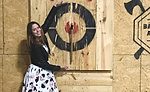Samdal is a regular here. No one raises an eyebrow at a woman throwing axes in heels. With confidence, she eyes the target, puts a foot forward, swings the axe, and releases it. She hits the target with precision.