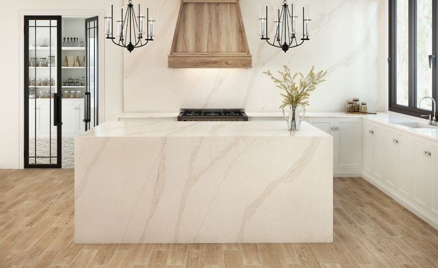 “Our state-of-the-art domestic facility creates quartz slabs that are the epitome of design and style,” said Roy Viana, director of natural stone and slab for Dal-Tile Corporation. “Daltile’s new products, Patriotic Calacatta and Independence Calacatta, are extra-large 136”x79” quartz slabs, the largest in the world. With designers and consumers wanting countertops and walls to be as free of seams as possible and with the increasing popularity of larger kitchen islands, these extra-large quartz slabs are a perfect material to meet today’s design needs. The quartz produced in our facility is made using proprietary design technologies, the most advanced decorative capabilities, the highest levels of gloss and clarity, and exclusive colors and designs.”