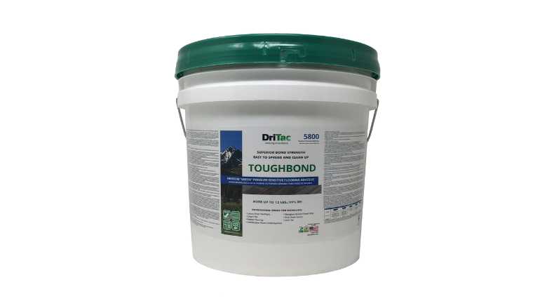 DriTac 5800 ToughBond is an easy-to-spread, high-performance adhesive has been formulated with exceptional application properties including high tack and grab, low odor, and easy cleanup when wet or dry. Offering a tenacious bond strength, DriTac 5800 ToughBond provides high moisture resistance of up to 12 lb. per the ASTM F1869 Calcium Chloride Method test, and 99% RH per the ASTM F2170 Relatively Humidity test.