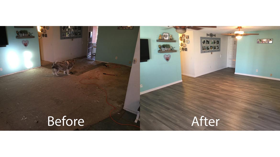 A few months back, we had that horrible storm that did a lot of damage to many homes in our area. Our recent client was part of this unlucky group. Sadly, during the storms their roof leaked while they were out with friends for dinner. The water damage was so severe that the entire floor needed to be replaced. Luckily, the homeowner’s insurance was able to step in and help take care of some of the project costs. Our client was not only able to get the floors she always wanted but they are also a better match with the family’s lifestyle. We were able to assist them from demo through installation to help them get back in their home and start entertaining their friends again. Give us a call at 555-555-5555 today or send us a message to discuss your project with today!