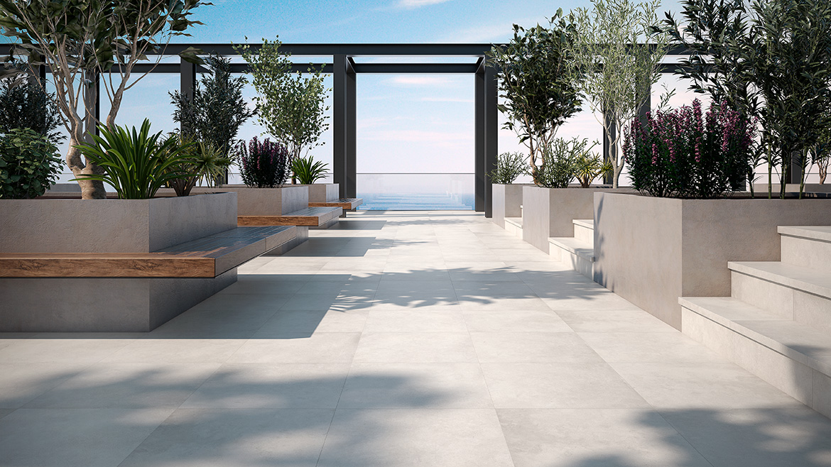 Urban20mm can be used indoors and out, in raised access floor systems, or directly on outdoor lawns, sand or gravel. When the tiles are bonded with adhesive or cement adhesive, they are so resistant that they can withstand wheeled traffic. Urban20mm can be used for places like terraces, parks, beaches, and even parking areas. Gres Aragón’s Bioklinker anti-bacterial treatment also ensures greater hygiene.