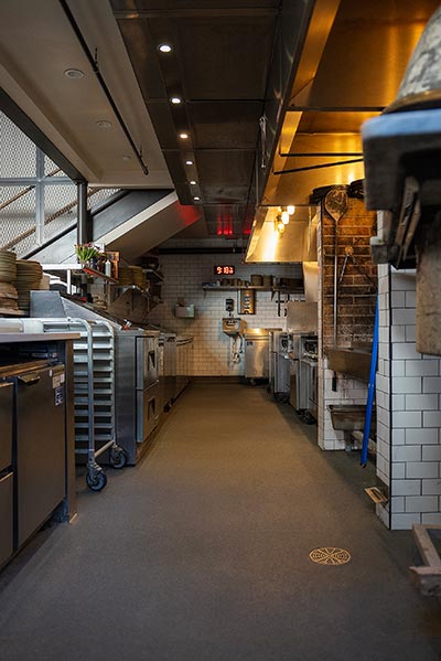 HydroGrip Motivate was installed in the new restaurant’s two kitchen areas, including the production kitchen that encompasses the entire lower level of the restaurant and also in the open-line kitchen that patrons can view from their tables.