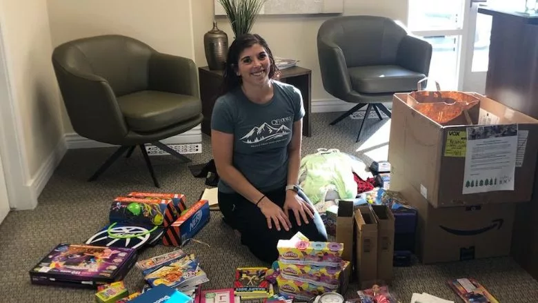 QFloors Marketing Director Aerin Ogden sorts donations for Primary Children's Hospital. Photo: QFloors.