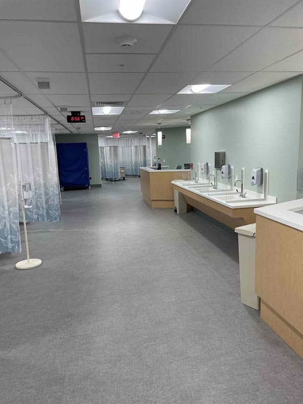 After New York design agency Bam Creative completed the architectural plans for Yale’s ED annex, Petra Construction Corporation of North Haven, Connecticut, took over managing the construction and general contracting. Petra then awarded the flooring work to commercial flooring specialist and INSTALL Warranty Contractor M. Frank Higgins & Co. – an installation contractor Petra had previously worked with on other Yale New Haven Hospital projects.