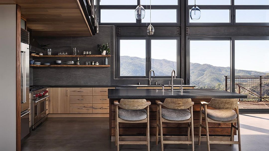 “We wanted an industrial, but comfortable, home that would take advantage of our views, but also be as fire-resistant as possible,” Jennifer Gonzalez said. “We eliminated a den, added some closet and storage space, and made the downstairs bedrooms a bit bigger. We worked tirelessly with the architect; we went to home shows; we watched home remodeling shows—all to tap into our own sense of what we wanted to achieve—a house that cannot only withstand fires and aggressive winds but also take advantage of the tremendous views of our location.”