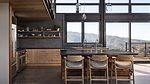 The upper level looks out over the valley with the mural located on the right-hand side of the lower-level space with walls, ceiling and floors encapsulated in NWP wood flooring.
