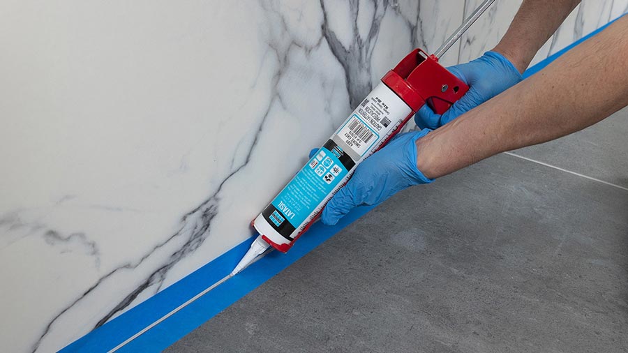 When tying the whole project together, consider the difference between an acrylic caulk and silicone sealant. Both come in a wide range of colors but work better in different areas and applications. Acrylic caulks clean simply with water and work best in areas where they will not be exposed to harsh cleaners, chemicals, or intense UV light. Think of areas such as along wood baseboards, casings, and windows. Silicone sealants also clean up easily with just some soap and water, but provide more flexibility and a higher level of resistance to movement, mold and mildew, and harsh chemicals. Use these high-performing sealants around tubs, sinks, toilets, and inside of shower enclosures.