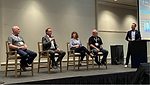 The Commercial USA panel discussion included (from left): Andy Korytkowski, SCI Floor Covering; Scott Wierson, Real Floors Commercial; Diane Ouzounian, Alpine Floor Coverings; and Dean Carter, Quality Floor Covering; and moderator Sharyn Bernard of Floor Covering Weekly. Photo: Floor Trends & Installation.