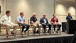 The American Home Surfaces Group panel discussion included (from left): Andrew Owens, Owens Flooring and Interiors; RT Bayles, Floor Authority; Nik Burdette, Atlanta Flooring Design Center; Steve Wright, Flooring Direct; TJ Schwartzel, Flooring Express; and moderator Jon Petz. Photo: Floor Trends & Installation.