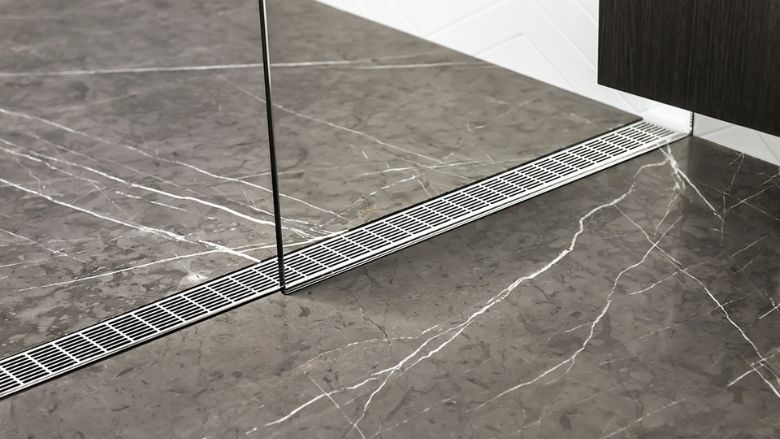Open-concept showers will continue to increase in popularity as designers are tasked with laying out modern, spa-like bathrooms. Photo: Infinity Drain.