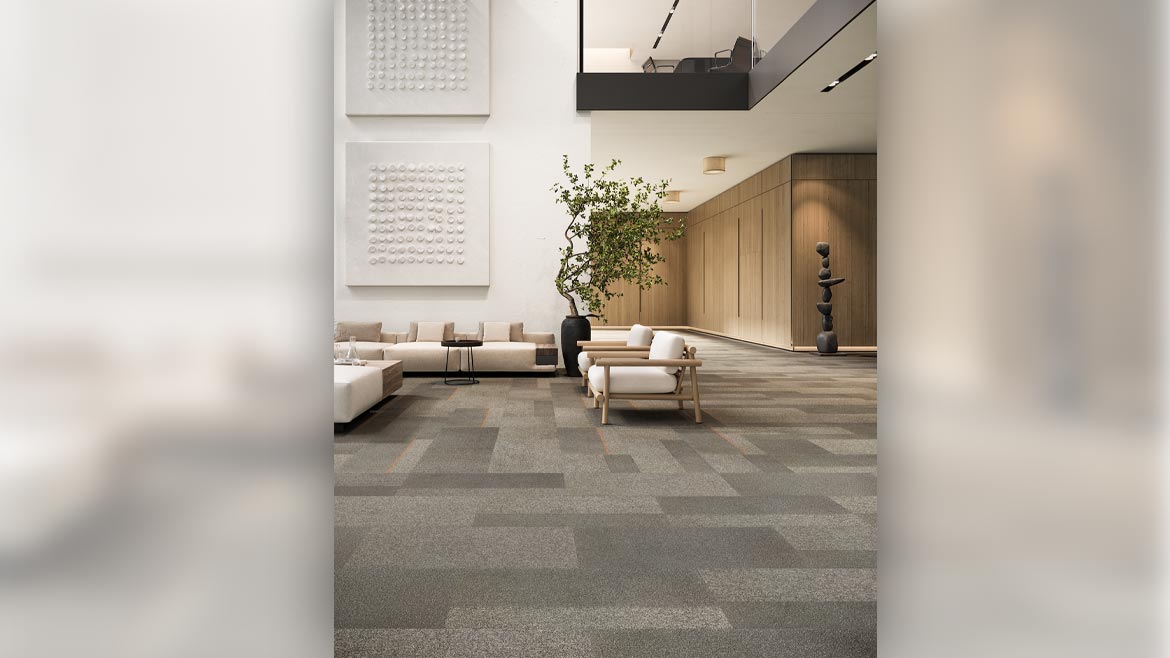 Each of the soft-surface patterns is available on Tarkett’s ethos Modular with Omnicoat Technology or on Flex-Aire Modular Cushion in 18” x 36” tiles. ethos Modular with Omnicoat Technology is a Cradle to Cradle Certified Silver, non-PVC backing made with post-consumer recycled PVB from car windshields and architectural glass. The Omnicoat Technology layer prevents moisture, pH or previous adhesives from affecting the floor installation. Flex-Aire Modular Cushion, made with 28 to 46 percent overall recycled content, provides superior acoustic performance, appearance retention and moisture management.