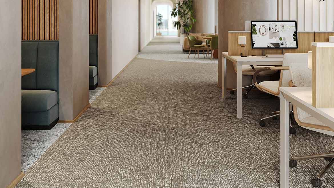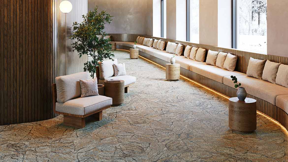 Muted, earthy tones provide a grounding foundation, creating warmth and balance in any space. Photo: Mannington Commercial.