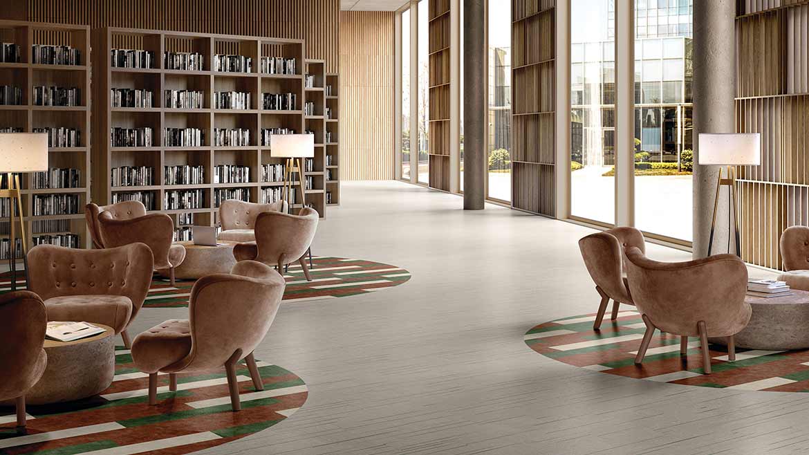 Tarkett's updated Acczent Woods & Stones collection embodies the durability imperative driving today's commercial flooring decisions Photo: Tarkett.